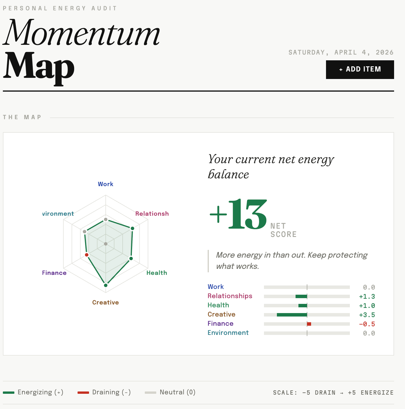 ⚡ Build a momentum map that visualizes what's energizing vs. draining your life right now