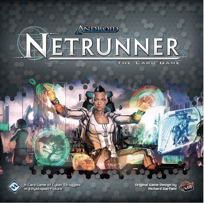 A two-player card game where one person plays a megacorporation trying to push through secret agendas, and the other plays a hacker trying to steal them before they can. The asymmetry is the whole point: the corp builds walls and traps on the network while the runner probes for weaknesses, and both sides are playing a completely different game with different cards, mechanics, and win conditions. Originally designed by Richard Garfield in 1996 and revived by Fantasy Flight Games in 2012, it remains one of the most elegantly designed games about AI, surveillance capitalism, and corporate power ever made.